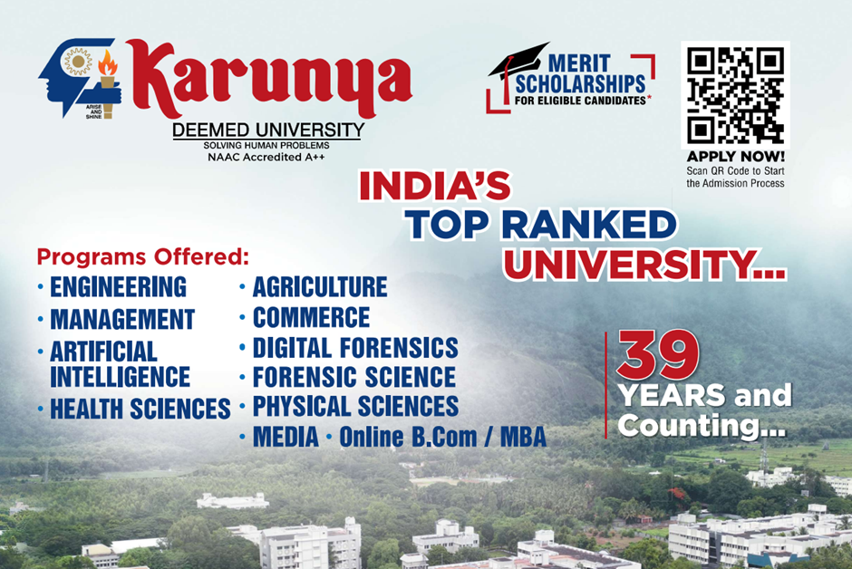 - Rs. 20,000 scholarship at Karunya University. (* T&C apply)