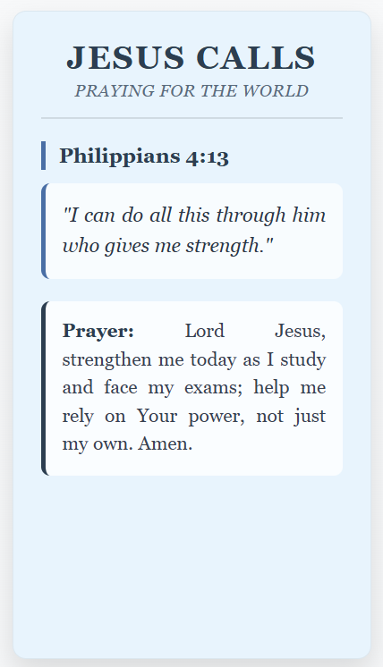 - Daily Prayer Tower blessing – your name specifically called out to heaven in prayer for wisdom, focus, and exam victory!